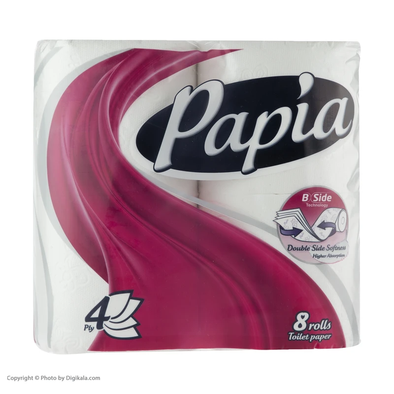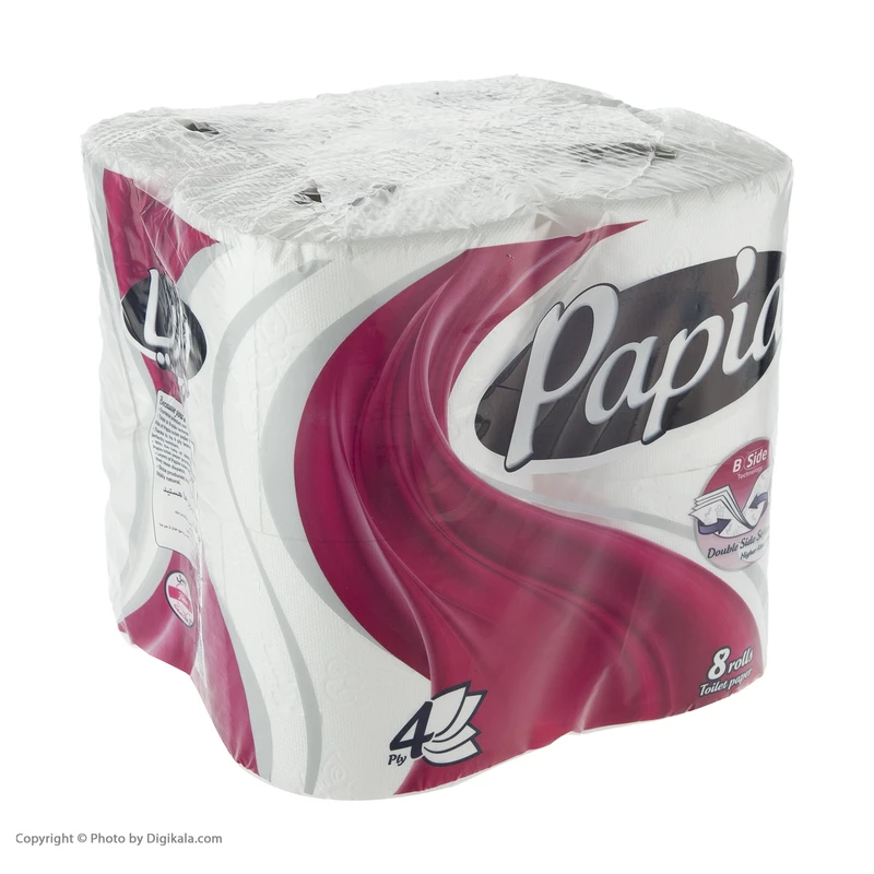 دستمال توالت پاپیا مدل B Side بسته 8 عددی Papia toilet paper, model B Side, pack of 8
