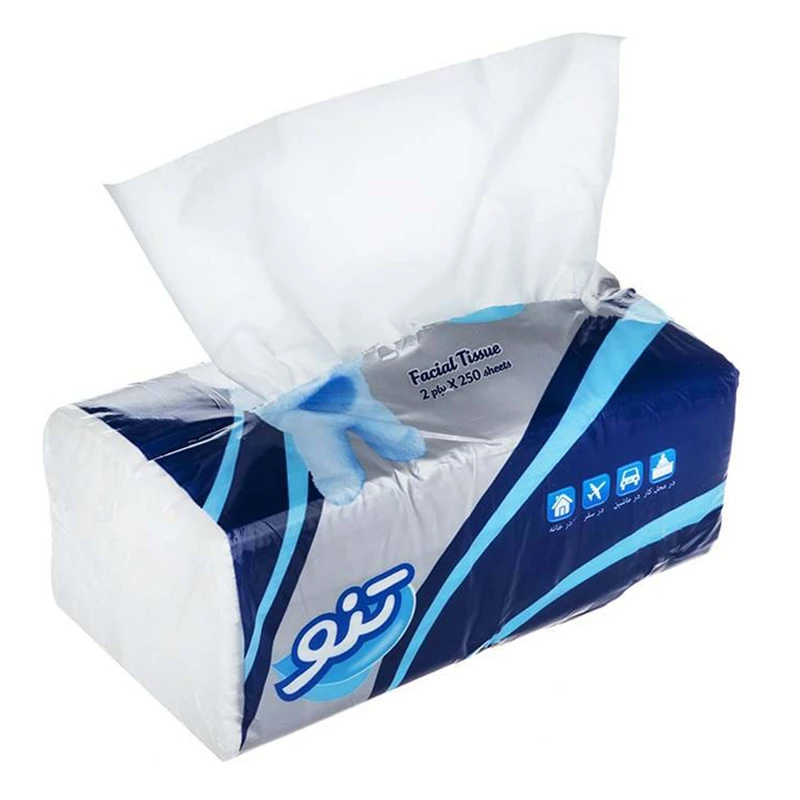 دستمالکاغذی نایلونی تنو یکی از پرکاربردترین انواع دستمالکاغذی است که در محل کار، رستورانها، خانه، ماشین و ... قابل استفاده است . این دستمال نرم و سفید بوده و 250 برگ دولایه است. این دستمالکاغذی شرایط بهداشتی با مواد اولیه کاملاً مرغوب تولیدشده است. استفاده از این دستمال بهصرفه است و با خرید آن برای خانه، ادارات، رستورانها، مدارس و ... مناسب خواهد بود. بهتر است بدانید با استفاده از این نوع دستمال سبب افزایش بهداشت و جلوگیری از انتشار انواع بیماریهای واگیردار خواهید شد. تعبیه شدن جعبه پلاستیکی برای دستمالکاغذی به شما کمک میکند تا از آنها در باکس های شیک، بدون مزاحمت استفاده کنید. توجه داشته باشید استفاده از دستمالکاغذیهای غیراستاندارد و فله ای ممکن است برای شما حساسیت ایجاد کند و دچار مشکلات زیادی شوید. پلاستیکی بودن بستهبندی دستمالکاغذی در مصرف کاغذ و مقوا در کشور صرفهجویی میکند و البته در نهایت دستمالی باقیمت مناسبتری نیز به دست شما مصرفکنندگان خواهد رسید.