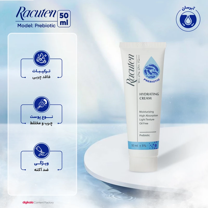کرم آبرسان راکوتن مدل Prebiotic مناسب پوست های چرب و مختلط حجم 50 میلی لیتر