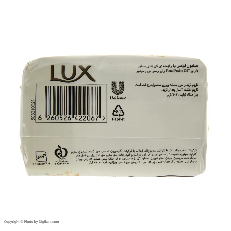 صابون لوکس با فرمولاسیون ملایم خود، به آرامی پوست را تمیز کرده و آلودگی ها و چربی های اضافی را از بین می برد.این صابون حاوی مرطوب کننده های طبیعی است که به حفظ رطوبت پوست کمک کرده و از خشکی و زبری آن جلوگیری می کند. رایحه ی دلنشین گل های سفید در این صابون، حس طراوت و شادابی را به پوست شما هدیه می دهد. صابون لوکس مدل گل های سفید برای انواع پوست، به خصوص پوست های حساس، مناسب است.شستشوی روزانه با صابون لوکس مدل گل های سفید، پوستی تمیز، شاداب و با طراوت به شما هدیه می دهد.این صابون با مرطوب نگه داشتن پوست، از خشکی و زبری آن جلوگیری می کند.فرمولاسیون ملایم این صابون، آن را برای استفاده ی روزانه مناسب کرده است.صابون لوکس مدل گل های سفید با رایحه ی دلنشین گل های سفید، حس خوشایندی را به شما القا می کند.